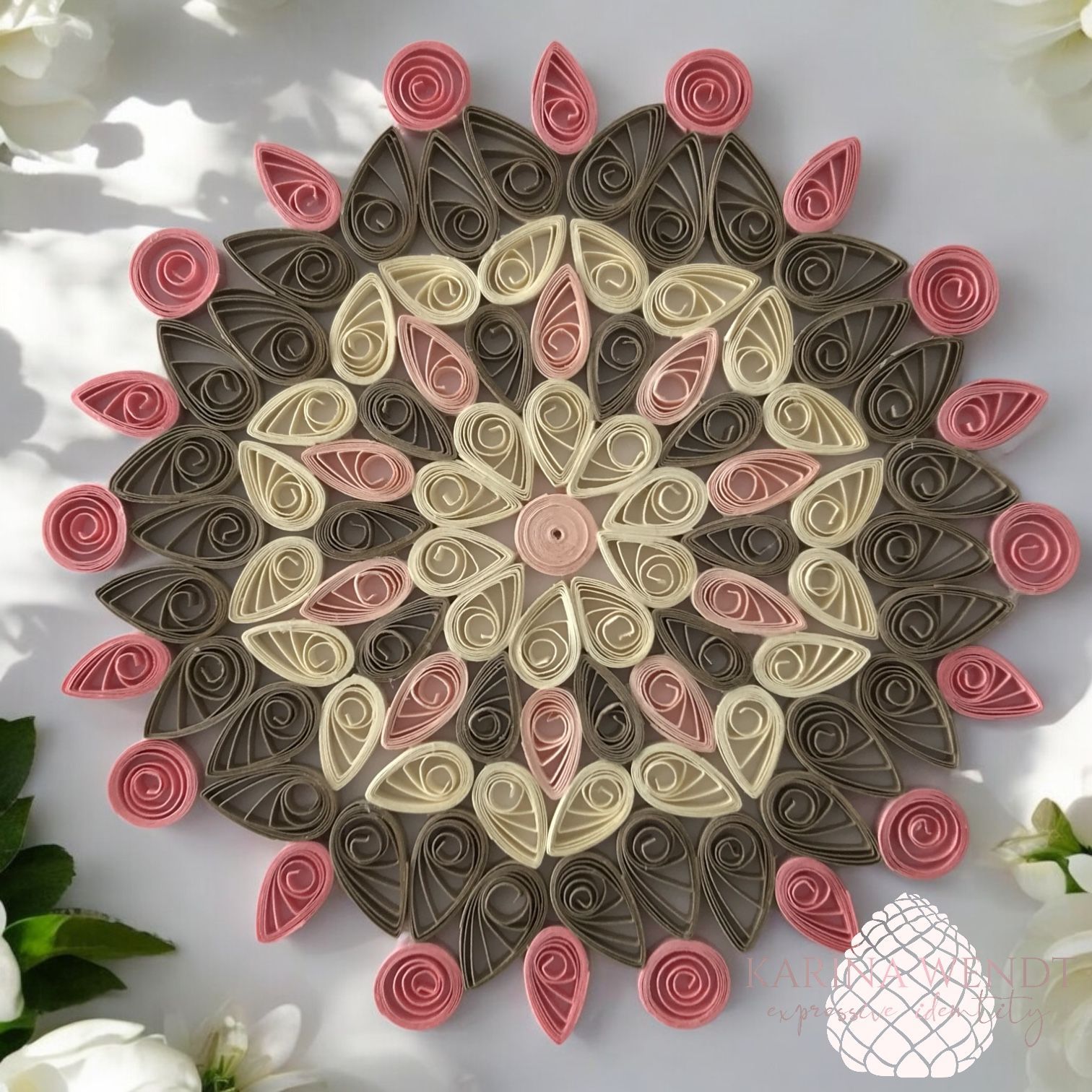 Mandalas mit der Quilling-Methode zu gestalten ist ein kreativer, meditativer Prozess. Ohne vorher festgelegtes Design entstehen durch das freie Zusammenspiel von Formen und Farben einzigartige Muster voller Harmonie und Ausdruckskraft. Jedes Mandala hat seinen ganz eigenen Charme und lädt zum Verweilen ein. Ob als kunstvolles Highlight auf einer Grußkarte oder stilvoll gerahmt – diese filigranen Kunstwerke entfalten überall ihre besondere Wirkung.